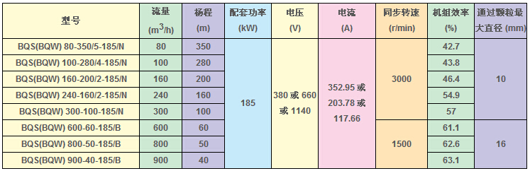 BQS(W)礦用隔爆型排污排沙潛水電泵技術參數(shù):