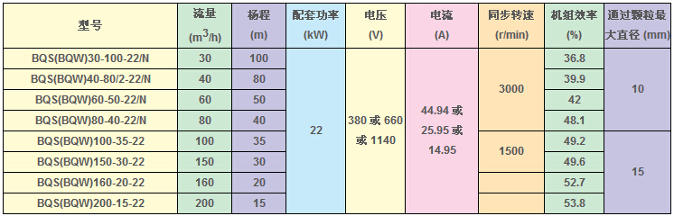 BQS(W)礦用隔爆型排污排沙潛水電泵技術(shù)參數(shù):