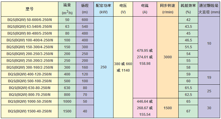 BQS(W)礦用隔爆型排污排沙潛水電泵技術(shù)參數(shù):